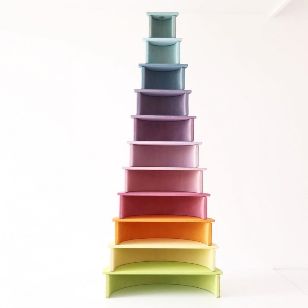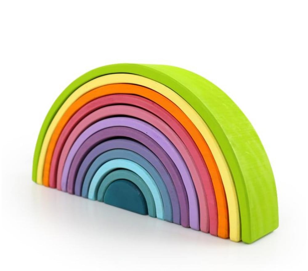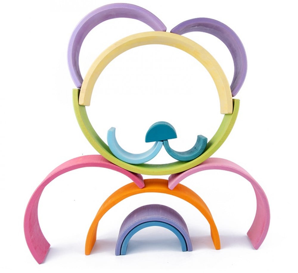 لعبة مصنوعة من خشب الزان الطبيعي على شكل قوس المطر مكونه من 12 قطعة.